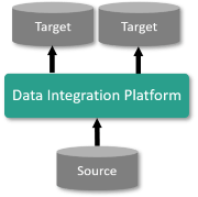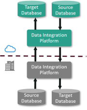 Replicate a database from a source to a target (where both the source and target can be Cloud-based or on-premises) using both a cloud based and on-premises Data Integration Platform.