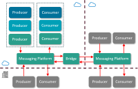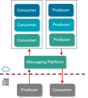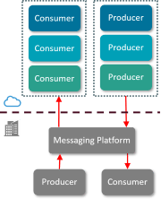 Messaging between producers and consumers (on-premise and Cloud based) with an on-premises messaging platform.