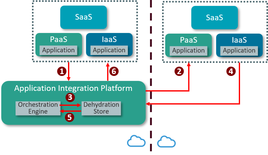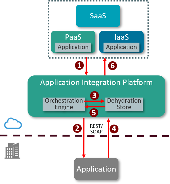 - The application integration platform stores the orchestration state in the Dehydration Store.
