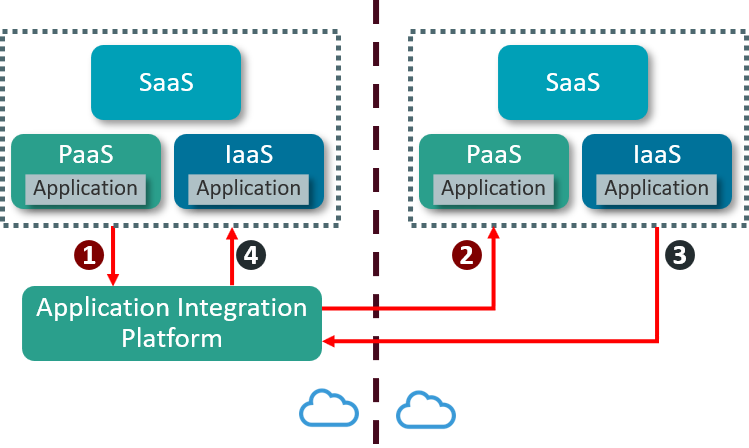 - The application integration platform communicates with the other Cloud-based application via an adapter. The Cloud-based application could be SaaS, an application running on PaaS or IaaS.