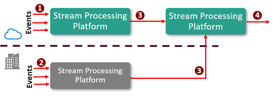 - Using both Cloud and on-premises stream processing allows events to be processed closest to the source of the events.