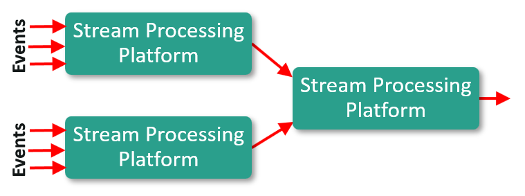 - After filtering, correlation, aggregation, and enhancement, a much smaller number of events is sent to the next tier of the EPN composed of the stream processing platform.