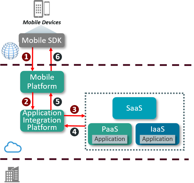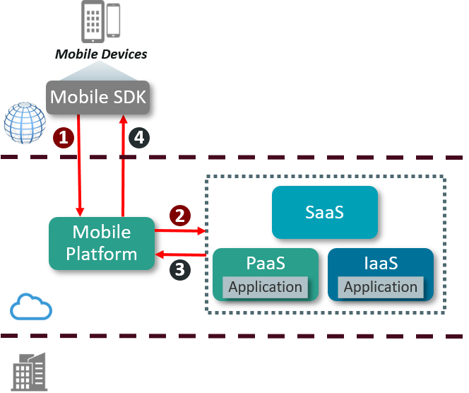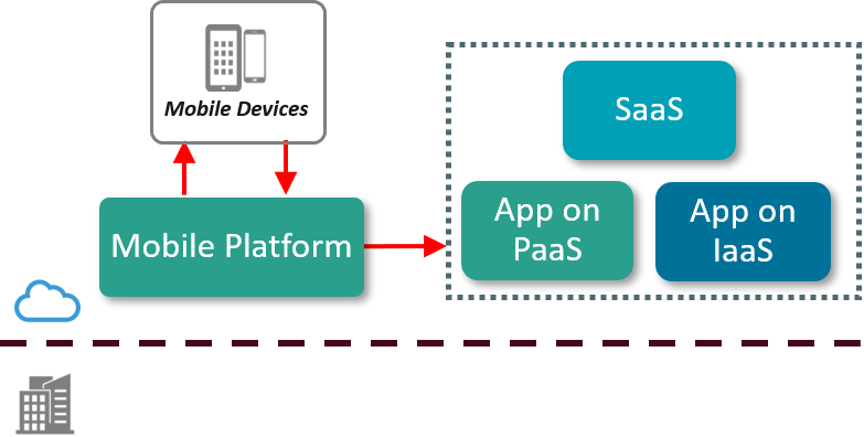 - The Mobile platform calls the Cloud-based application. The Cloud-based application could be SaaS, or an application running on PaaS or IaaS.
