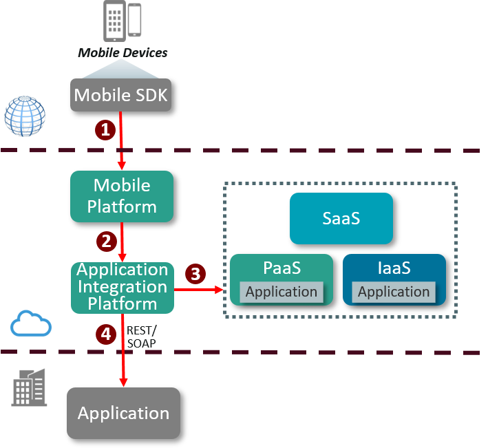 - The Mobile platform calls the application integration platform. The