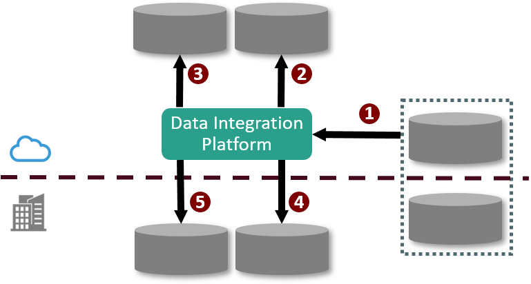 | Solution | The pattern employs one Data Integration Platform regardless of the location of the source and targets. | |
