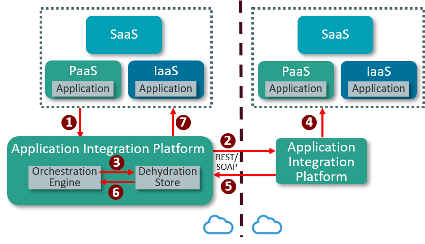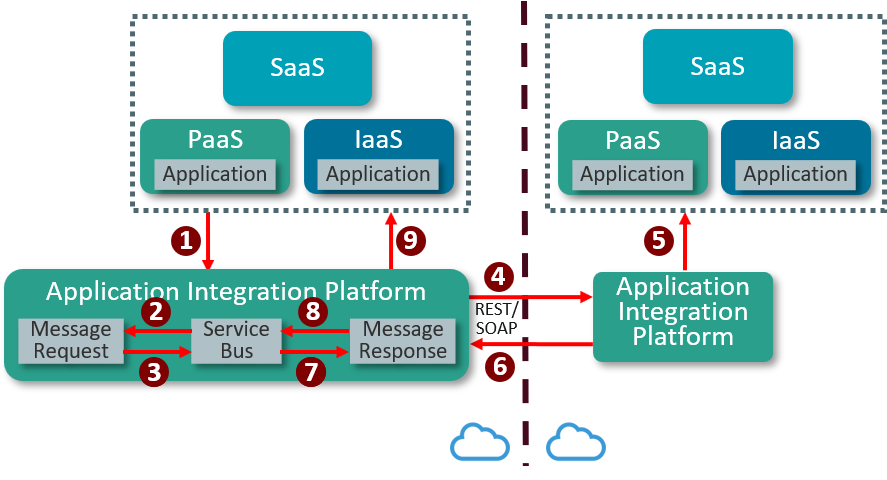 - The application integration platform in the other Cloud sends the response to the application integration platform.