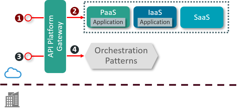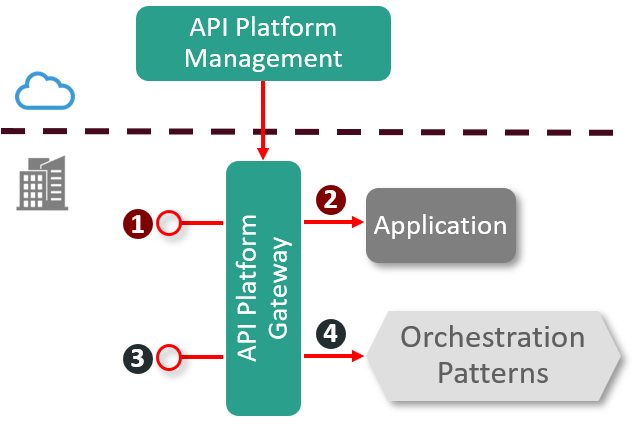 - The interface for an orchestration is exposed by the on-premise API Platform Gateway.